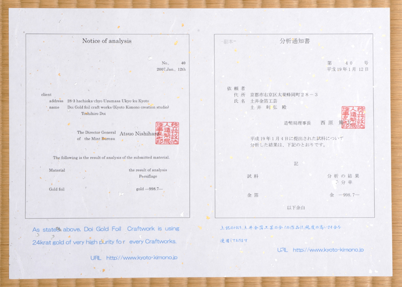 金箔を一度溶かして塗り上げた、黄金の龍の置物です。 金箔張りほどではありませんが、十分に光沢と輝きがあり、コストパフォーマンスに優れた逸品です。 お正月・年始のおみやげ・贈り物に、あるいはご自宅の飾りとして、いかがでしょうか。 ご注文をいただいてから仕上げに10日ほどかかります。 ※分析通知書の複本とともに創作の際に実際使用する金箔を京都伝統の油取り紙に包みお送り致します。 のしをご用命の場合はご注文時、その他連絡事項欄に「のし利用」と明記し、のしの種類、記名内容等を お書き添えください。(→のしの例)